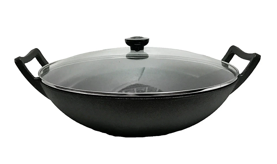 Cajun Classic Seasoned Cast Iron Wok With Glass Lid
