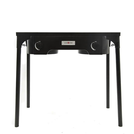 This High Pressure Double Fry Burner by Cajun Outdoor Cooking has all the features of Bayou Classic’s original double propane burner with added extras. The High Pressure Double Fry Burner includes the heady duty steel frame with extension legs. The extension legs on the High Pressure Double Fry Burner raise this propane burner’s height to 28 inches high. The cooking surface on the Specialty Double Propane Burner measures 30.75 x 15.75 – LARGER than the Bayou Classic specialty burner.
