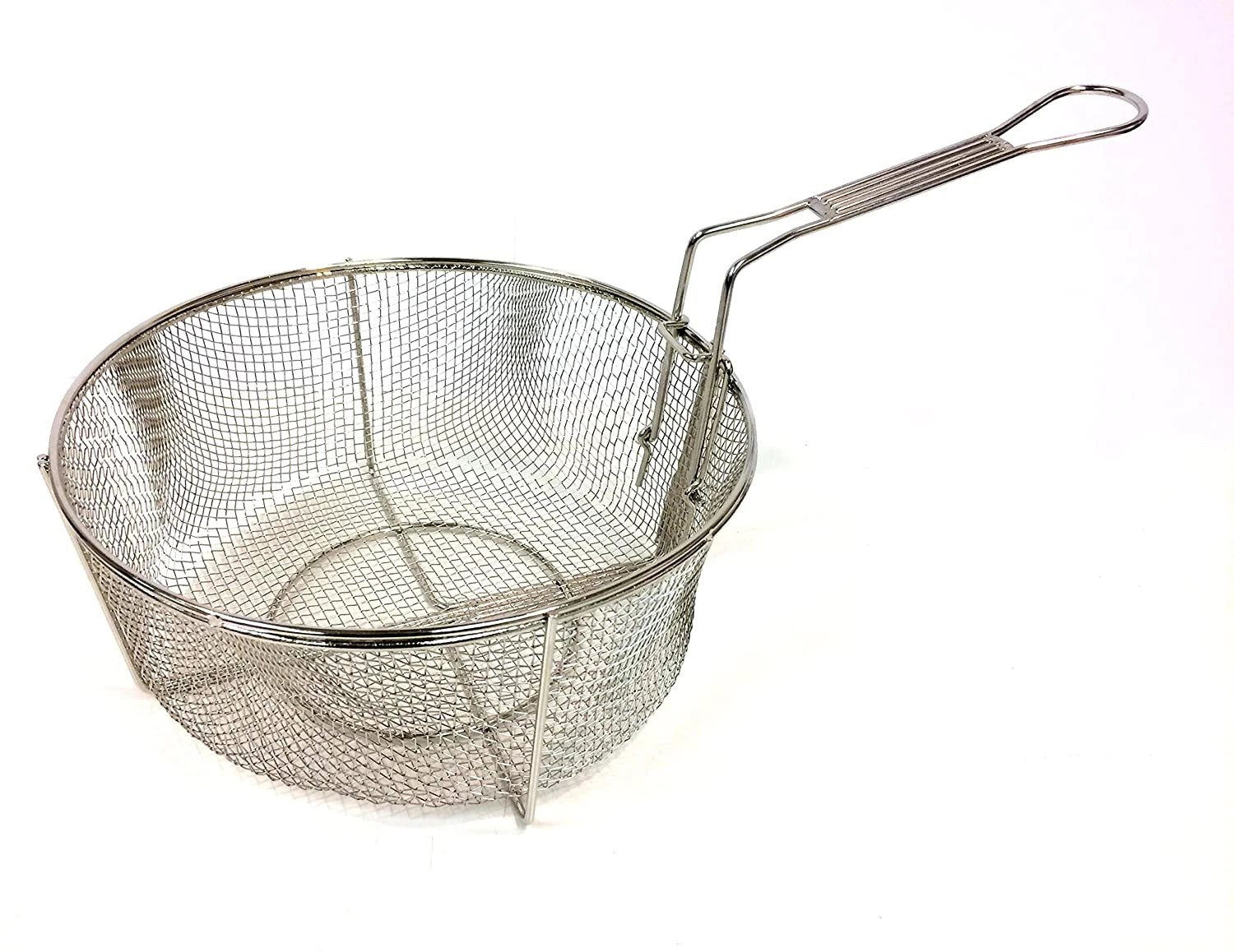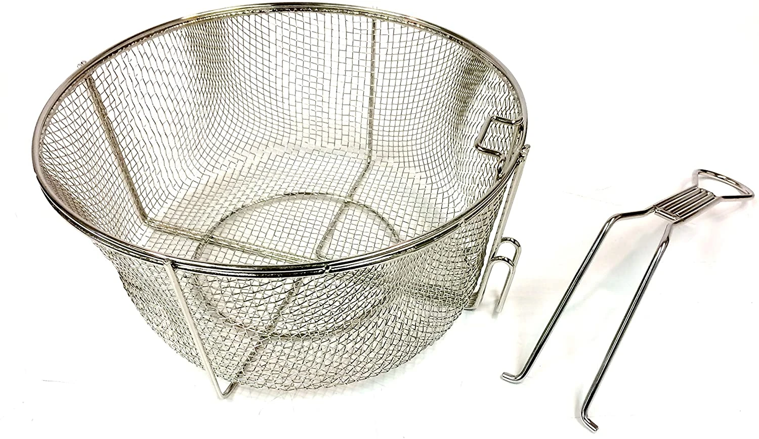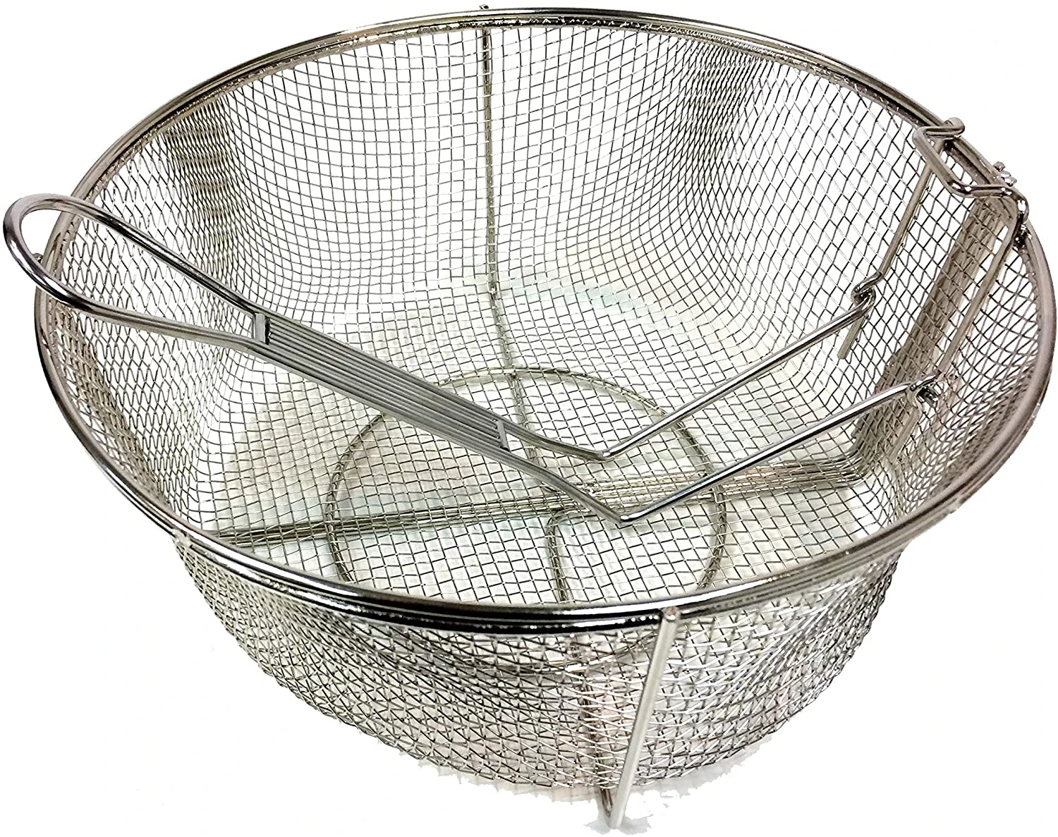 The Bayou Classic Stainless Fry Basket with Folding Handle is made to use as an accessory to several fry pots and dutch ovens. Please be sure to measure your pot prior to purchasing this wire mesh basket. This stainless fry basket is unique due to the location of the hook, which is located on the bottom. Most wire mesh baskets have hooks at the top of the basket. Your food ends up sitting in the grease, and ain’t no one got time for that! The Bayou Classic Stainless Fry Basket sits higher than your grease when trying to drain your food. It measures 11” W x 5” D.
