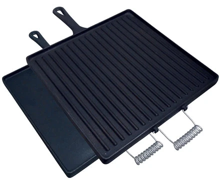 The 14″ X 14″ Square Griddle is great for preparing burgers, steaks, eggs, pancakes and tortillas. Cast iron construction allows for even heat distribution, eliminating cold spots. 2-Sided Griddle! 1 Flat Side, 1 Ribbed Side. Pre-seasoned and ready to cook!
