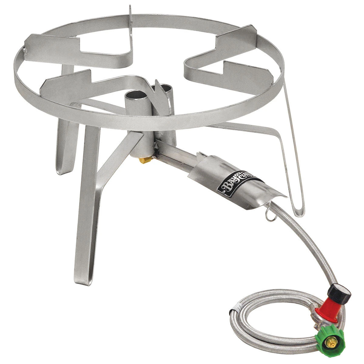For the last few years the Propane Double Jet Burner has been one of our more popular propane burners, however many of you have voiced that you wanted a stainless steel version. Our Stainless Steel Double Jet Burner has all the same features as the Propane Double Jet Burner with the added protection of stainless steel. The Stainless Steel Double Jet Burner will not rust like your propane burners made with black steel. The width of the cooking surface is 18 inches wide, making the Stainless Steel Double Jet Burner capable of supporting up to an 162 quart stock pot. This propane burner will also heat up large boiling pots twice as fast as single burners you find on the market. . . which makes it PERFECT for boiling crawfish. 120,000 BTU rating.